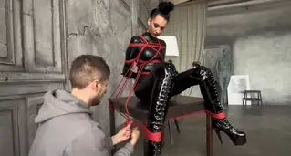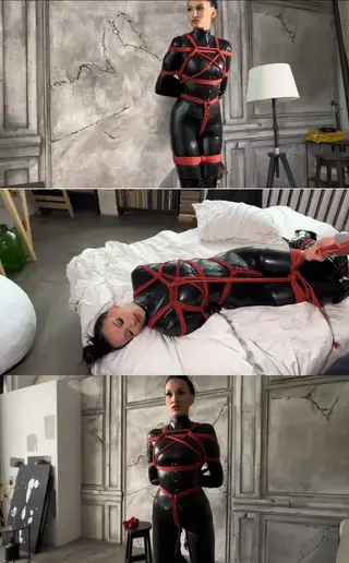 紧缚、捆绑、绳缚、束缚、乳胶、乳胶紧身衣、绳缚、胸缚、后手缚