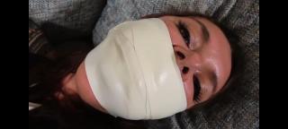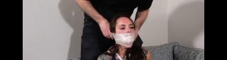 Parker made a foolish bet with a friend, lost, and now it’s time to pay up. Her friend uses this opportunity to reveal his kinky side, deciding the payment will be tying and gagging Parker in a sexy outfit. He ties her wrists, chest, ankles, and feet (done off-screen). To gag her, he stuffs a filled stocking in her mouth and ties 2 white cloths over her lips. He decides to try pushing his luck She might be a little kinky herself. Is she enjoying wriggling in the ropes and moaning into the thick gag? When her gag is changed, she opens wide without hesitation to accept the long pink striped sock, which is held in with athletic pre-wrap. Pleased with this development, her friend gives her a brief foot rub before playing with her tits again. Her final involves a massive panty packing and 2-inch microfoam wrapped tightly over her mouth. This lost bet may have led to a discovery for Parker, one her friend is all too happy to continue exploring with her.