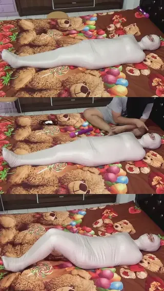 After successfully seducing, finally this beautiful girl was willing to be mummified for the first time in the room.