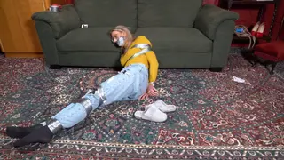 Layla is watching TV and some rubbish bondage is shown. She decides she wants to try it, calling a take out from AGB. She is rapidly taped up, still in her slippers. Awesome.