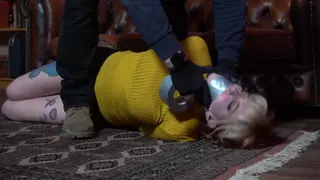 Amber is thrown to the floor and hogcuffed. But those cuffs are needed elsewhere so the mystery goon replaces the cuffs with tape and a tape gag.