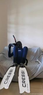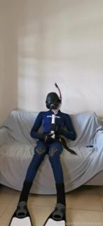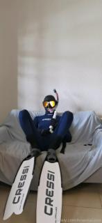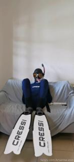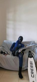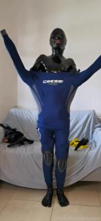 第一次尝试双层穿衣,里面穿乳胶紧身衣,外面穿 Cressi Fast 3mm 潜水服,和往常一样,下面也戴了个[X_X]????