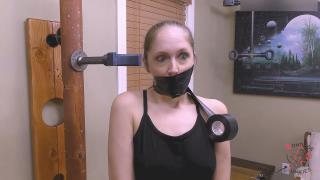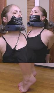 让瑞秋保持警惕总是很有趣,但没想到这次她的处境如此真实。她的嘴被胶带封住,胳膊和肘部也被胶带勒得紧紧的,她已经无力回天了。真正的乐趣始于她被拴在一个坚硬的项圈里,被迫保持警惕。很快,[X_X]夹也连接到项圈上,这又为她保持警惕增加了第二个理由。没过多久,她就开始感到疲惫。绝望的她试图够到夹子,想稍微缓解一下,但毫无用处。It's always fun to keep Rachel on her toes, but didn't expect her predicament to be so literal this time. Mouth sealed shut with tape with more pressing her arms and elbows together, she's already helpless. Her real fun begins when she's bolted into a rigid collar, compelled to keep on her toes. Nipple clamps soon follow and are connected to her collar, adding a second reason to stay high on her toes. It doesn't take long before fatigue starts to set in. Desperate, she tries to reach her clamps and gain some relief, but it's no use.