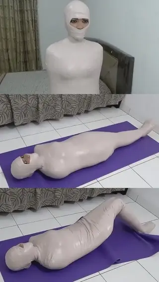 The girl's body was tightly wrapped with white duct tape and left the head uncovered until the final scene was completely wrapped.