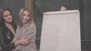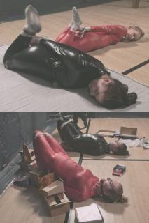 Two gorgeous and competitive girls - Xena in a black catsuit and Katrina in red - face off in a real challenge of endurance, flexibility, and ticklish laughter.
