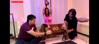 This time Kassandra will be tied to the stocks and will receive an intense tickling on her feet and upper body, then liquid chocolate will be spread on her feet while 2 ticklers lick her soles until they are clean. Kassandra will not be saved from receiving tickles with baby oil and hairbrushes once her feet are worshiped.
