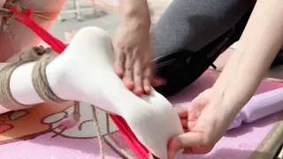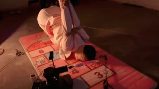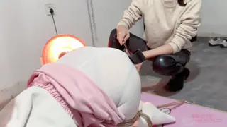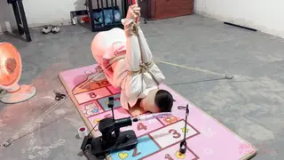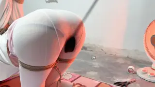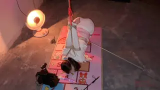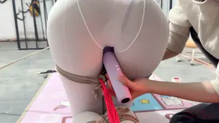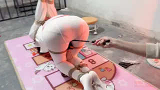 瑾初穿着白色职业装,白色丝袜,上半身直臂吊起,双腿跪下,大腿固定,腰捆绑固定在地钉上,保持平衡。瑾年将瑾初绑好后,瑾初的P股完全暴露出来,方便玩下T,瑾初的P股又圆又大,又敏感,瑾年不断刺激着她的下T,抽打打PP,不断扣弄着小穴,挠和抽打脚心,ZD棒刺激。最后拿出P机,放置瑾初,瑾年决定瑾初的下面充满淫水的时候将P机完全塞进瑾初的小穴......