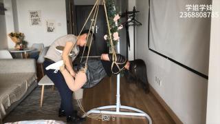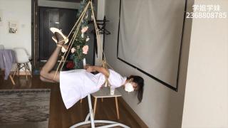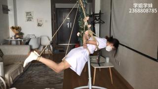 6、解语第二次被吊:护士装换上黑丝,大长腿在空中更见性感。解语真是天生的绳模,仅被吊了一次,第二次被吊时就能自己抬起来第二条腿,主动帮绳师调整位置。