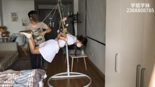 3、新模伊诺第一次被吊:白裙白袜公主鞋,很坚强的妹妹,吊一只脚时觉得疼,催促绳师赶快把另一只脚也吊起来