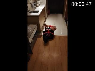 小男娘身着黑色体操服和油亮肉丝,正在接受萨老师严厉的呼吸训练