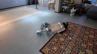 Following the loan shark’s suggestion, his upper body was tied with ropes to make it harder for him to move,
