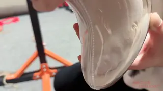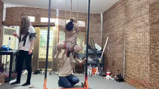 瑾初被瑾年还有水儿吊起,M字腿,上半身五花,白色紧身裙,肉丝,穿着透明高跟鞋,跳蛋放在丝袜内,瑾初痛苦并呻吟着,瑾年和水儿玩弄着瑾初的下T和X部,用力抠弄着,ZD棒不断刺激着。被吊着的瑾初身上冒着热气,透明鞋充满了水蒸气,鞋子丝毫不透气,将鞋脱下迎面扑来瑾初脚的味道。水儿拿出震动小G塞,挑逗着敏感的后门,将震动小G赛固定在后门,留下瑾初自己在空中痛苦的嚎叫着,直到头重重的垂下......