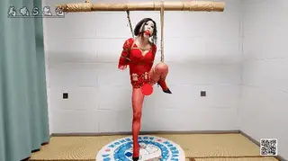 已购35次 片名:紧缚榨汁训练篇《紧缚红色蕾丝新娘 上》石家庄上课中、预约体验加下方联系方式咨询 固定脚铐、蛇鞭、5.5口球堵嘴、穿着高跟鞋半个小时的单腿吊绑放置榨汁训练、红色蕾丝连衣裙