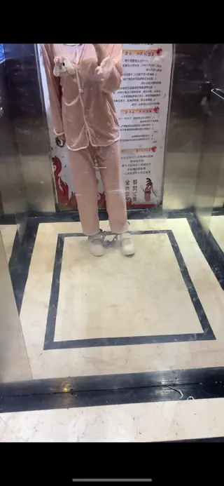 带着脚镣在家里转了一会儿,便想着出门玩一下,妹子拖着脚镣打开家门,坐电梯下楼,电梯上没人,妹子又对着镜子拍了几张照片