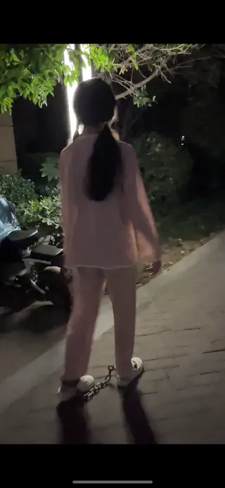 双马尾学妹深夜镣铐外出-戴脚镣出门玩