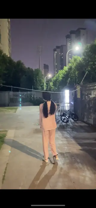 下了电梯偷偷的到小区口,观察一下没人,拖着脚镣走出小区,路上碰到人不得不蹲下遮盖一下