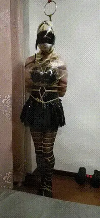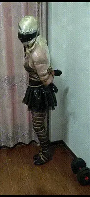 单腿站立高跟鞋。勒脖子罚站,加上保鲜膜包起来。请勿模仿哦