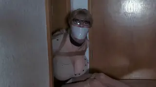 At home of Ms Lynch, a fresh divorced mother: She lives actually with her son and the youth welfare office has send a psychotherapist, Chrissina, to controll and check their actual situation and if it's the right place for Tommy, the son. But mom and kid still have their own plans and don't accept any disturbing or destroying of them. And so the attractive and busty Chrissina steps directly into a sneaky trap! While chatting with Tommy all alone, she becomes brutally overwhelmed by the teenager. As Ms Lynch returns home, she finds a helpless captured Chrissina on her toilett, tied up to a towel-holder and also gagged-up with a thick towel! So Tommy did a good preliminary work and mom and son can prepare their flee calmly while a desperate Chrissina sturggles and moans hopeless in her predicament. Before the sneaky duo leave, Ms Lynch does a harsh upgrade on Chrissina's restriction and adds a bunch of more ropes on the big boobed Bimbo and muzzles her with a massive tape-wrap-gag! After mother and son have left, a proper bound and gagged captive struggles her way through the locked up flat, not knowing how and when she can escape from her sidious trap.