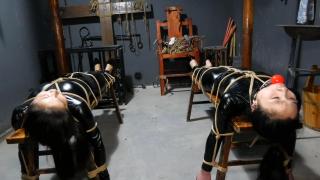 经过授权发布。上一集讲述一名胶衣女特工潜伏女老大基地偷到机密不料被敌人发现俘虏,另一个同伙见她迟迟未归也潜伏基地准备营救,不料女老大早有准备,同伴也深陷女老大的陷阱。两人被女老大大字捆绑大号口球堵嘴放置在地牢中一夜,第二天将两人拉到刑讯房绑在老虎凳上质问她们来的目的和背后主使,两名胶衣女特工闭口不说,女老大队她们用上水刑,欲知后事如何敬请期待下集。另外招聘模特,喜欢做模特拍片可以联系我们,QQ342642509