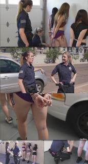 Zoey Jade, Valentina, and Siren got into a small accident and started arguing on the side of the road. Officer Lexi and Officer Autumn showed up and quickly placed them under arrest for causing a disturbance. All three of them were handcuffed behind their backs and risked before being put in the back seat of their car. At the station all three were helped out and patted down again before being led inside.