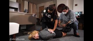 Isabella is working in the office when two people suddenly arrive: an agent and Officer Je C. The officer informs her that she is under arrest and that her presence is required at the station. Isabella thinks its a joke but everything changes when Officer jumps on her and begins to handcuff her using police brutality. The agent holds Isabellas legs to prevent the struggle from being too obvious to the other employees, who want nothing less than a commotion. So they allow Isabella to sit down and rest, but not before interrogating her. Isabella attitude doesnt help matters, so the two officers decide not to waste any more time and put Isabella in the vehicle to take her to the station.