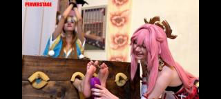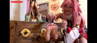 Obviously Yae Miko wants to get the best part, for her revenge she chooses the stock, Miss Hina has tiny feet of only 22cm, 5USA, 34EU, Yae Miko will have a great time using some tools to get a laugh out of poor Hina, a little baby oil is always effective if we want to add a few decibels to the submissives laughter.