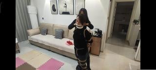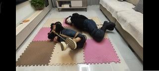 两女相约到家里玩捆绑游戏,中途有人敲门,结果被劫持,发生意外,两女都被绑。最后挣扎解开,下次找个安全的地方。。。