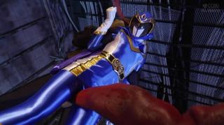 在与哈迪西昂的战斗中,战队的女战士神秘蓝凭借水与冰的力量压制了敌人!然而,即使是她,也难以抵挡巴尔——一只她极其厌恶的青蛙状生物。这只可怕的生物哪怕只是轻轻触碰她,都会让她感到不适,并用长长的舌头舔舐她的身体……败北昏迷不醒的蓝被哈迪西昂俘虏,并被魔法师米里奥博士吸收了魔力。米里奥博士提出用她的同伴的情报换取她的自由,但她强烈的正义感让她拒绝了。她纯洁的身体被调教猥亵地抚摸,性刺激不断,最终刺激到她的下体,让她剧烈地喷射。随后,她允许米里奥进入她的身体,让她多次达到高潮。失去魔力的女英雄试图逃跑,却遭到战斗者战斗员们的攻击,她的身体被肆意玩弄。最终,巴尔的泡泡融化了她的魔力,她被他可怕的夺走……【坏结局】