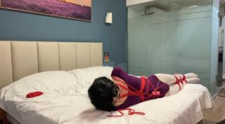 自缚过程加塞上玩具折磨,绑好以后打开玩具,在床上只有无助的挣扎,在小玩具的折磨下几分钟就顶不住高潮了