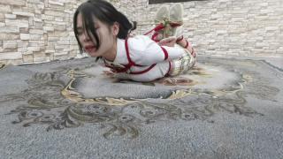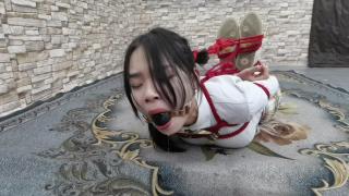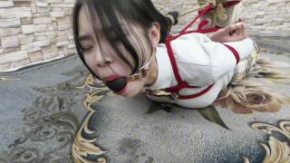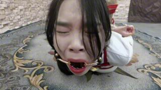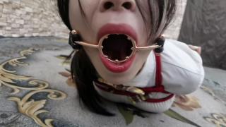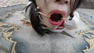 新模特语涵口球加压舌口环驷马挣扎,压舌口环越挣扎口水越多,干呕呼吸困难,差点昏过去,最后干脆把灯关掉让她自己去挣扎去吧......