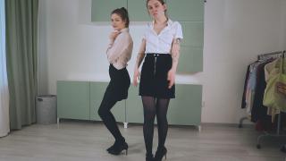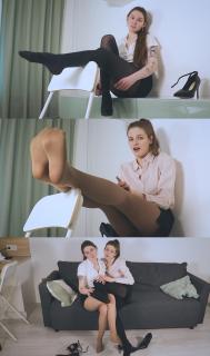 He chooses two beautiful girls: Olivia and Sandy. They have no slavery background and rather shy than confident. Drake let them know that there are rules and theirs body are only his since this moment. The outfits for today are school uniform with heels and nylon pantyhose.