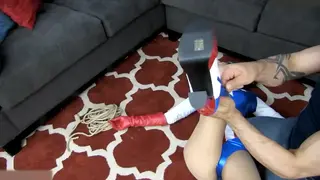 Liberty Girl is tracking a dangerous thief when the suspect gets the jump on her. She awakes rope-bound on the floor and struggles with all her might to escape. Liberty Girl manages to loosen some of the rope, but not before the masked villain returns and knocks her out again.