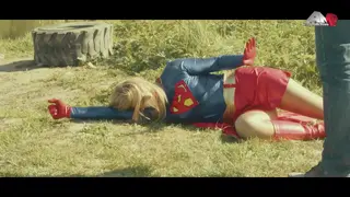 Superheroine R-Girl defeated by her enemy.
