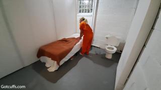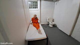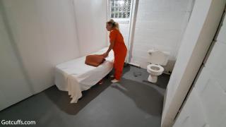 Zoey is taken back to her cell where she is uncuffed so she can put her uniform back on. She uses the bathroom before being cuffed again. She has to make her bed so the guard can inspect it before bed. Emily is also shown cuffed to the bench until the guard comes back to take her back to her cell
