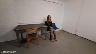 JJ puts hinged cuffs on her wrists and she struts around. Then she gets to the floor and puts herself into some bondage poses. Next her ankles are cuffed with hinged cuffs and she inches around slowly in those gorgeous heels. She is then hogcuffed with another pair of hinged cuffs. Her long legs making it look