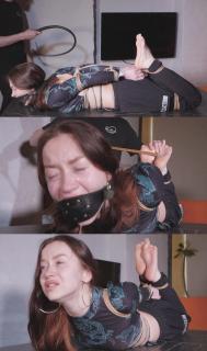 基拉是个狡猾的小偷,正准备再次下手。但这次她走错了门……逃跑已经太迟了,疯子的双手已经把她捆成了猪蹄状。他一直在等她,等着她那双赤裸的小脚任他摆布的那一刻。他的手指狠狠地掐进她娇嫩的脚底,准备对她施以残酷的鞭笞。每一次鞭打都让基拉泪流满面,她的尖叫变成了哭泣和呻吟。即使嘴里塞着布条,也无法阻止她的抽泣。鞭子、棍子、皮鞭让她的脚后跟又红又肿,火辣辣地疼……究竟什么才能让基拉后悔自己的选择?Kira is a cunning thief, aiming for another catch. But this time she went through the wrong door...It's too late to run, the maniac's tenacious hands have already tied her up in hogtie. He was waiting for her, waiting for the moment when her small bare feet would be at his mercy. His fingers dig painfully into the delicate skin of her feet, preparing her for a hard bastinado. Each blow causes tears to flow from Kira's eyes, and her screams turn into crying and moaning. Even the gag can't hold back her sobs. A flogger, a stick, a whip make her heels red, hypersensitive, burning...What would make Kira regret her decision?