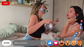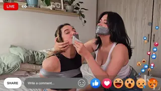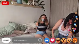Luana is preparing her bondage stream, today she's following what her audience ask her. She invites Simona and get you to choose between PVC tape or Duct tape, you choose PVC for body and Duct tape for mouth, so they do so. After Luana's all taped up, Simona removes both Duct Tape gags, to apply a tight PVC wrapgag on both of them.