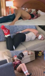 布莱克·拉维斯塔是辛西娅·比新雇的保姆。辛西娅警告布莱克要小心,因为她的继子女很调皮。辛西娅离开后,布莱克开始和那几个小家伙玩耍,结果被他们捆绑起来堵住了嘴。布莱克挣扎着,但无法挣脱。过了一会儿,辛西娅回来,发现布莱克在沙发上挣扎。当她去解开布莱克的绳子时,辛西娅醒来发现自己也被绳子绑住了。她们两人能逃脱吗?Blake LaVista is the new babysitter hired by Cynthia Bee. Cynthia warns Blake to be cautious as her stepchildren are mischievous. After Cynthia leaves, Blake starts to play a game with the brats and ends up bound and gagged. Blake struggles but cannot get free. Some time later Cynthia returns and finds Blake struggling on the sofa. As she goes to untie Blake, Cynthia is and awakens bound with ropes herself. Will the two escape?