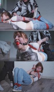 布兰布尔又惹上麻烦了,谁能想到这种事会发生?她被绑在衣橱里,为了自由什么都愿意做,但她的绑架者渴望占有她,并且对她另有打算。布兰布尔被绑在衣橱里,苦苦哀求,直到绑架者用布堵住了她的嘴。哦,对了,更精彩的还在后面,现在这个小贱人再也求饶不了了,只能呜咽呻吟。布兰布尔根本没有机会逃脱,绑架者绑住了她的胳膊和胸口,然后开始拖拽她。布兰布尔呻吟着,试图反抗,但她被无情地摔倒在地,踢打着。布兰布尔试图爬行反抗,但被绑着,嘴里塞着球形口塞,又能做什么呢?他踩在她的背上,拽着她的头发,她只能呻吟着等待命运的降临。然后,他把她的双手绑在背后,让布兰布尔遭受更大的痛苦。当绑匪感到无聊时,他开始掐住布兰布尔的脖子,布兰布尔无助地在地上挣扎,感到一阵阵恐惧和惊慌,而那个疯子则在一旁欣赏着这一切。布兰布尔的眼神中充满了无助,但逃跑的渴望却从未消退。绑匪很享受这种感觉,他像对待新玩具一样测试布兰布尔的体力,于是他把她独自留了一会儿,看着她贪婪地呼吸着,试图用嘴巴抓住空气。布兰布尔的眼神中也充满了恐惧,于是他继续踢打布兰布尔,用腿和胳膊掐住她的脖子,让她缠着绷带的身体痉挛,脸色变得苍白,眼神中充满了求饶。布兰布尔开始失去时间的概念,她贪婪地呼吸着,但她的呻吟声却让绑匪感到愉悦。他把布兰布尔绑成越来越难受的姿势,她痛苦不堪,但布兰布尔仍然挣扎着想要反抗,她希望这一切能结束。然而,他却用脚踩她的脸和身体,嘲弄她。她感到压力,感到困惑,尽管她的身体在反抗,但他没有停手,他想让她觉得自己像个无助的玩具,让她感到羞辱,让她觉得逃脱的希望随着每一次呼吸而消逝。那时,布兰布尔还不知道等待着她的是什么。这个疯子决定采取更果断的行动,他把布兰布尔的身体像绳子一样绷紧,不让她休息片刻。她呻吟着,试图挣脱束缚,但为时已晚。他又拿出一根绳子,开始把她的双手直接绑在腿上。她感觉这次有些不对劲,但她无能为力。绑架者完成了对布兰布尔的束缚,离开了,留下她独自一人,心力交瘁,羞辱不已,彻底屈服了。她呻吟着,但谁会听见一个嘴里塞着东西的被绑女孩的呻吟呢?Bramble is in trouble again, who would have thought that such a thing could happen? She sat tied up in his closet and offered anything for her freedom, but her captor longed to possess her, and he had his own plans for her.. Bramble sat tied up in the closet and begged for mercy until the captor gagged her. And oooooh yes, it got a lot better, now this little bitch can no longer beg, just mumble and moan. Bramble had no chance to get out, the captor tied her arms and chest, and then began to drag her along, Bramble moaned and tried to resist, but she was thrown to the floor mercilessly kicking, Bramble tried to crawl and fight back, but what can you do in a bound state with a ballgag in her mouth? He stepped on her back and pulled her hair and all she could do was moan and wait for her fate, then he bandaged her hands behind her back so that Bramble would suffer even more. When the captor got bored, he began to squeeze Bramble's neck and she floundered helplessly on the floor and felt frantic fear and panic while the maniac enjoyed the view. There was helplessness in her eyes, but the urge to escape did not leave her, and the captor liked it and he tested Bramble for strength, like his new toy, so he left her alone for some time, and watched as she breathed greedily trying to grab air with her mouth. There was also fear in her eyes, so he continued to kick and step on Bramble, and pushed her neck with his legs and arms, so that her bandaged body cramped, her face turned pale, and her eyes begged for mercy. Bramble began to lose track of time as she breathed greedily, but her moans continued to please the captor. He bandaged Bramble into more uncomfortable positions and she suffered even more and more, but Bramble still tried to fight and move, she hoped that it would end, but he mocked her by stepping on her face and body with his feet, she felt pressure, and was confused, even though her body was rebelling, but he did not stop, he wanted to make her feel like a helpless toy, feeling humiliated and like her hope of escape was fading with every breath. Back then, Bramble still didn't know what was waiting for her. The maniac decided to act decisively, and decided to bandage Bramble's body so that it stretched like a string, and would not let her rest for a minute, she moaned and tried to remove her hands, but it was too late, he pulled out an additional rope and began to tie her hands directly to her legs, she felt that this time something wrong, but there was nothing she could do. The captor completed the bondage and left Bramble, leaving her alone with herself, broken, humiliated and surrendered, she moaned, but who would hear a bound girl with a gag in her mouth?