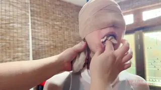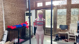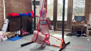我穿着白色连体丝袜,整个头部被绷带缠绕着,嘴里塞着短丝袜。上半身被绑上五花,私密部位绑着股绳,狠狠的勒在X体,上半身和股绳吊在杆上,被主人命令蹲下,下面被强烈的刺激着。随后主人命令母狗踮起脚,右腿翘在左腿上,左腿的脚还踮着脚,母狗的左脚剧痛无比,整条腿都麻了,下面的股绳越来越紧,主人奖励母狗zd棒,支在母狗的X体,快感迅速直击母狗,自己开始扭动,直到母狗达到G潮,主人命令母狗在高潮一次,母狗听话就在高潮一次.......