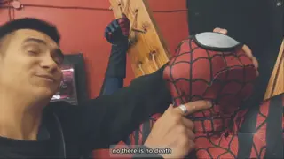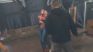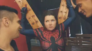 our superheroine Spider girl disguised as a journalist comes to the office of an authoritative thug