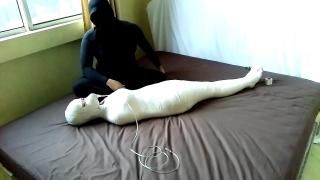 One girl was quarantined with her body wrapped tightly in mummification. The girl's body was completely wrapped and breathed only using the tube from the oxygen mask. Not enough with that, this girl was tortured by having her breath hole closed and her head covered with a swimcap