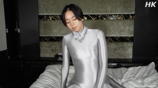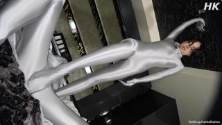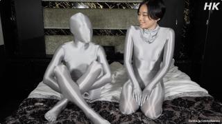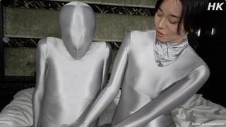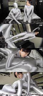 平泉和男伴一起穿着银色zentai激情贴贴。