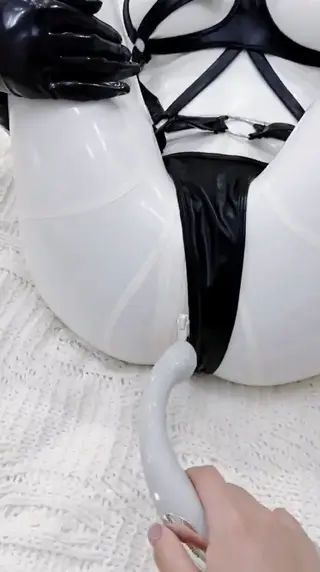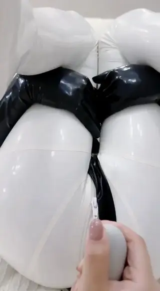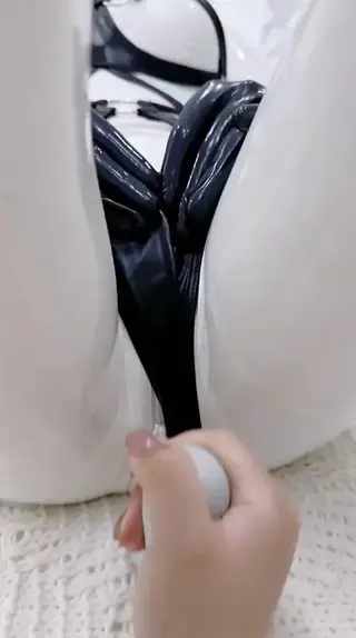 片名:白色全包乳胶衣凹套黑色乳胶微孔头套后庭玩弄