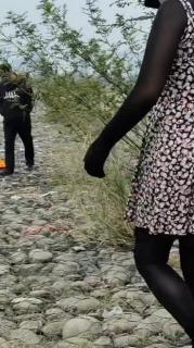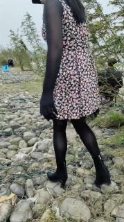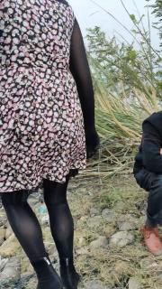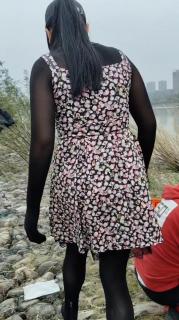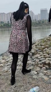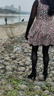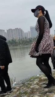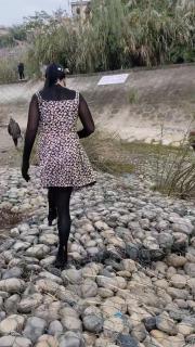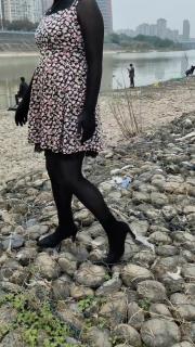 大s穿着她喜欢的全身黑色连体手丝和高跟鞋。走在江边最不平的砂石鼓上,她都不怕崴到脚。一路上还走的很快。两边很多钓鱼的人。她还主动去跟钓鱼的人打招呼....