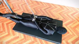 敵組織潜入に失敗した諜報員は拘束され、幽閉されていた。視界は遮られ、両手足も固定され、身じろいできない困難な姿勢のまま放置された。敵は手を下さす、ただ姿勢による負荷だけで追い詰めていく。