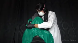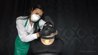 今天我要研究一下呼吸困难的问题。我的奴隶说他胸部不舒服,好像有什么毛病。好吧……我要好好检查一下他,当然,我不想让他给我添麻烦。所以我把他紧紧地绑在椅子上,给他戴上颈圈,确保他的头不会动。他现在完全无力反抗,我的检查将有助于我确定他是否真的有问题。我先给他吸了点氧气,看看他的反应。当然,氧气里加了一点我事先配好的溶液,确保他放松下来,不会挣扎。吸完氧气后,他就完全受我控制了。所以我决定拿他做个实验。我戴上一副紧紧的黑色乳胶手套,开始测试他的呼吸。当我把手紧紧地捂住他的嘴时,他开始喘气。嗯……这是个好兆头。因此,我继续测试他的意志力。我的手越抓越紧,他喘不过气来,我的乳胶手套紧紧捂住他的脸。看着他痛苦挣扎、努力呼吸时那凸起的眼睛,我感到无比享受。他开始有些躁动不安,于是我又给他喂了一些我那污浊的氧气来让他平静下来。又捂住他的嘴让他窒息了一会儿后,我心想我的贱货或许没什么大碍。不过,我还是想确保万无一失。我脱下塑料围裙,紧紧地绑在他的头和脸上。我把他留在那里,他每呼吸一次,塑料围裙就收缩一次,紧紧地贴在他的脸上。他无处可逃,等我回来的时候,我相信我所有的努力都会找到治愈他的方法……