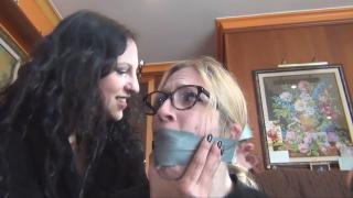莉莉丝是一位重要商人的继女。西比尔和简·琼斯很清楚这一点,她们认为这是一个勒索巨额赎金的绝佳机会。她们等待着受害者,并迅速袭击了她。她们用胶带绑住她的双手,脱掉她的袜子。然后,她们用袜子和胶带堵住她的嘴,最后用胶带捆绑住她身体的其他部分。但是,你永远不能相信罪犯,即使是你的同伙。西比尔决定背叛她的同伙,把简·琼斯也绑了起来。“现在所有的钱都归我了!”“啊 ...Lilith is the step-daugther of an important business man. Sibyl and Jane Jones are very aware of this, and they see a perfect chance to get a lot of money for ransom. They wait for their victim and quickly assault her. The tape her hands and remove her socks. Then they use the socks and tape to gag her, and finally they tie the rest of the body with tape. But you can never trust a criminal, even if its your partner. Sibyl decides to betray her partner and ties Jane Jones too. “Now I'll keep all the money for me!”, “MMMMMMMMMMMMMMMPPPPPPPPPPPPPPPPHHHHHHHHHHHH!!!!!!!!!!!”. The plan goes perfect for Sibyl. Now she can get all the money for herself! But the two damsels are in trouble now! They are so helpless!