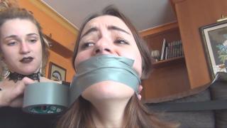 最近巴塞罗那真是个危险的地方。很多女性遭到抢劫或袭击,新一代的罪犯横行无忌,警察束手无策。其中一个罪犯就是黛安娜。她知道这座城市是发财的好地方,于是开始行动。她的计划从抢劫开始。她潜入了一户人家。房子看起来空无一人,但房主阿基蒂奥却来了。黛安娜设法躲了起来,并伺机袭击了阿基蒂奥。她用胶带绑住了阿基蒂奥的双手,用袜子和一条巨大的胶带封住了她的嘴。阿基蒂奥被绑好后,她的室友桃子也来了。桃子试图帮助朋友,结果也被黛安娜绑了起来,嘴也被堵住了!两个受害者现在都被绑住了,嘴也被堵住了,完全无力反抗。黛安娜要把所有的钱和珠宝都拿走!“呜 ...Barcelona is a dangerous place these days. A lot of women are being robbed or assaulted, there's a new wave of villains that the police can't stop. One of those villains is Diane. She knows she's on a good city to make a lot of money, so lets get to work. Her hunt begins with a robbery. She manages to sneak into a house. The place seems empty, but Arkytior, the owner, arrives. Diane manages to hide, and she assaults Arkytior when she has the oportunity. Ties her hands with tape and gags her with her socks and a huge tapegag. Once she's all tied up, her roomate Peach also arrives. She tries to help her friend, but she ends tied up and gagged by Diane too! The two victims are now tied up and gagged, totally helpless. And Diane is going to get all the money and jewells! “MMMMMMMMMMMMMMMMMPPPPPPPPPPHHHHH!!!!!!!”.