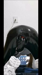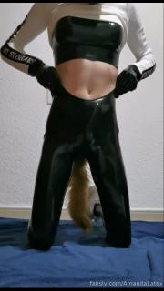 This album features latex leggings/gloves/top/micro-perforated hood, Filas, gasmask with rebreather, tailplug, lots of anal playing (fingering, toying, etc), blowjob/deepthroat, masturbation with magic wand, fapping and hands-free cumming.